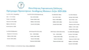 Ο Πανελλήνιος Γ. Σ. σας ενημερώνει για το ημερολόγιο πρόγραμμα των Ακαδημιών του Συλλόγου των Ολυμπιονικών στα Αθλήματα που αναγράφονται στη φωτογραφία την οποία μπορείτε