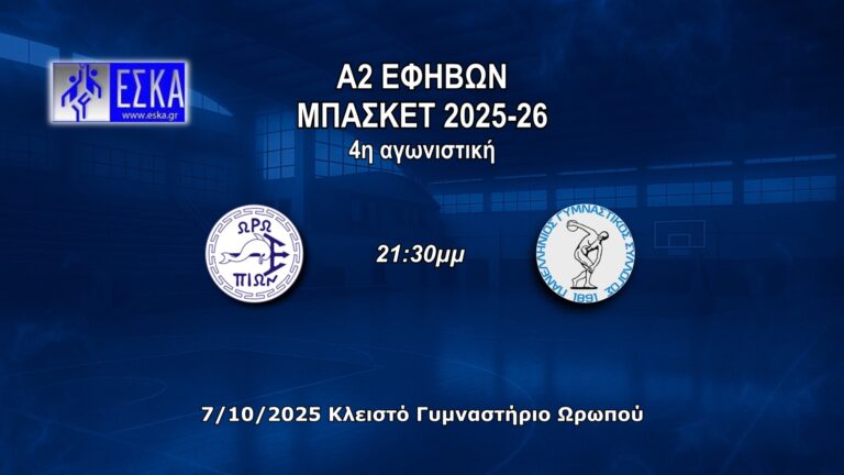 Από τον Ωρωπό θα φιλοξενηθούν απόψε στις 21:30μμ οι Έφηβοι του Πανελληνίου Γ.Σ. για την 4η αγωνιστική του Πρωταθλήματος Α2 κατηγορίας της ΕΣΚΑ. Η ομάδα του Γιάννη Καίκη προέρχεται από δύο συνεχόμενες νίκες και θέλει να «χτίσει» ακόμη περισσότερο το σερί της και να παραμείνει στα ψηλά της βαθμολογίας, καθώς τώρα είναι στην δεύτερη θέση ισόβαθμη με άλλες δύο ομάδες.