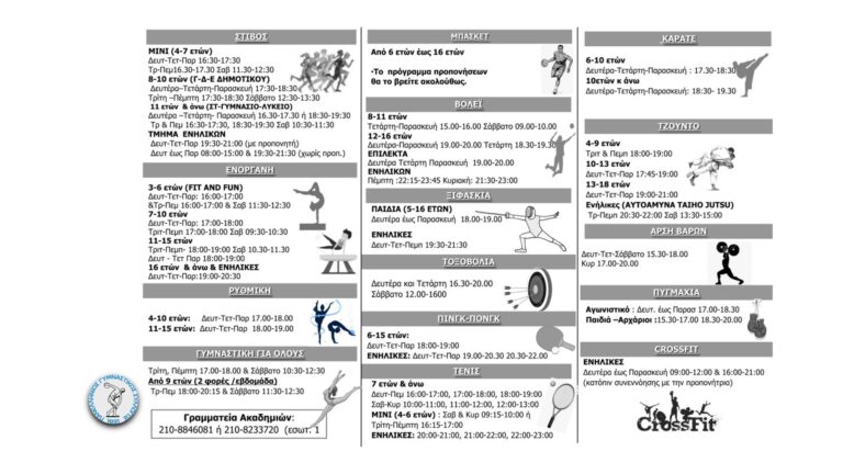 Ο Πανελλήνιος Γ. Σ. σας ενημερώνει για το ημερολόγιο πρόγραμμα των Ακαδημιών του Συλλόγου των Ολυμπιονικών στα Αθλήματα που αναγράφονται στη φωτογραφία την οποία μπορείτε να δείτε σε μεγάλο μέγεθος στην σελίδα Facebook του Πανελληνίου.