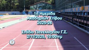 Ο Πανελλήνιος Γ. Σ. ανακοινώνει την διοργάνωση της 1ης Ημερίδας Στίβου για τα τμήματα των Ακαδημιών που θα διεξαχθεί στις 2 Νοεμβρίου 2025 στις εγκαταστάσεις