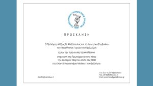 O Πρόεδρος Αλέξιος Ν. Αλεξόπουλος και το Διοικητικό Συμβούλιο του Π. Γ. Σ. έχουν την τιμή να σας προσκαλέσουν στην καθιερωμένη εκδήλωση για την κοπή